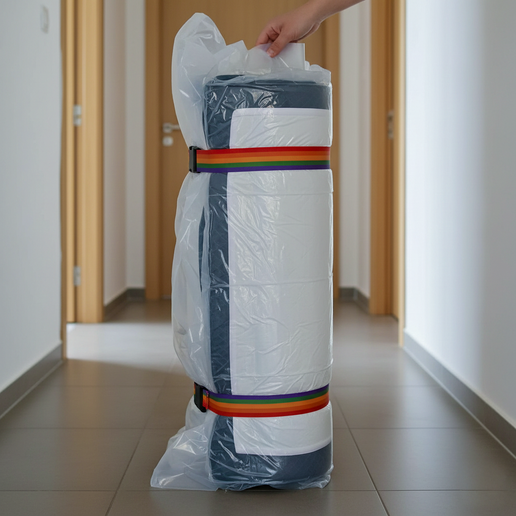 Just roll the mattress into the bag, vacuum out the air, and voilà. It’s compact, secure, and ready to go.