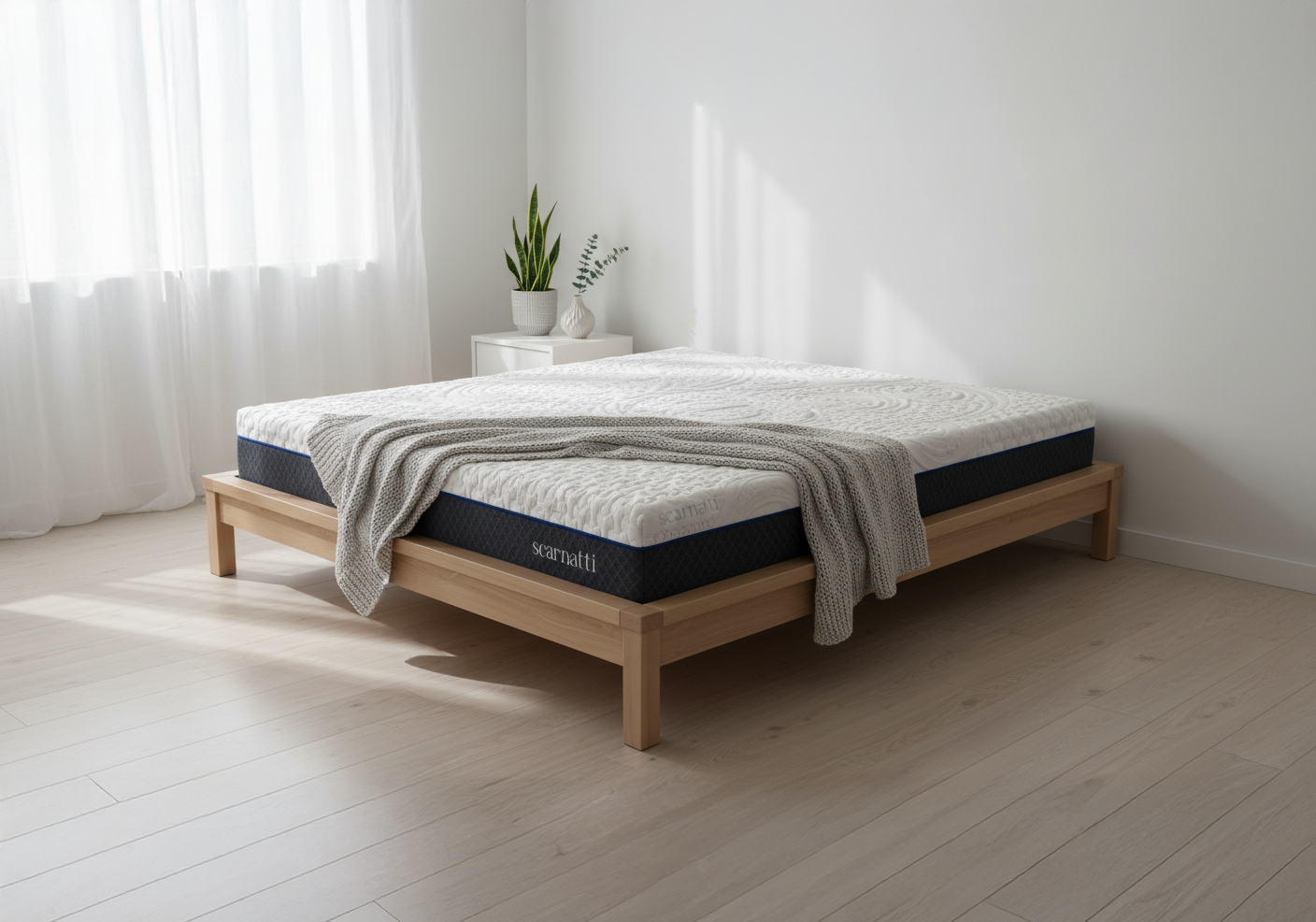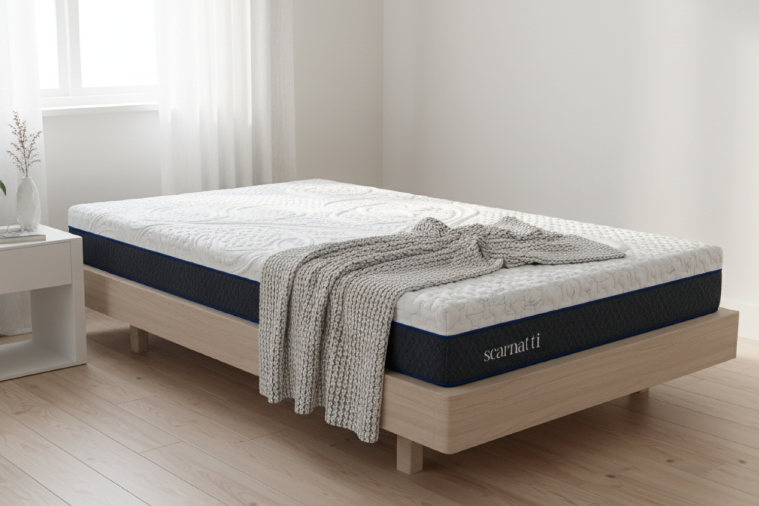 Scarnatti peut être utilisé sur toutes les bases solides et uniformément soutenues : lattes fixes (espacement ≤ 4 cm), sommier à ressorts ou bases réglables.